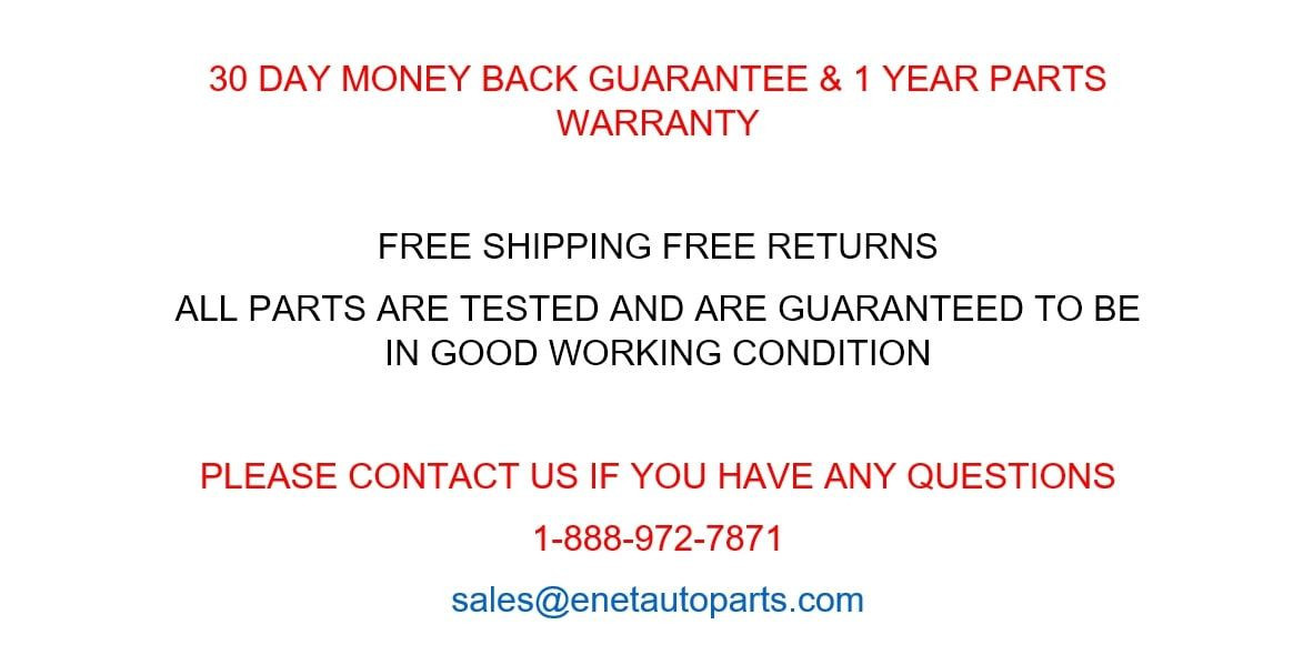 All parts we sell come with a 30 Day Money Back Guarantee unless otherwise stated. The 30 day period starts when you take possession of the part. Please contact us through eBay messaging for a Return Merchandise Authorization Number (RMA) before returning any part. Most parts we sell on eBay also come with 1 Year Parts Warranty unless otherwise stated. We do not cover the cost of labor charges during the installation of your parts.
